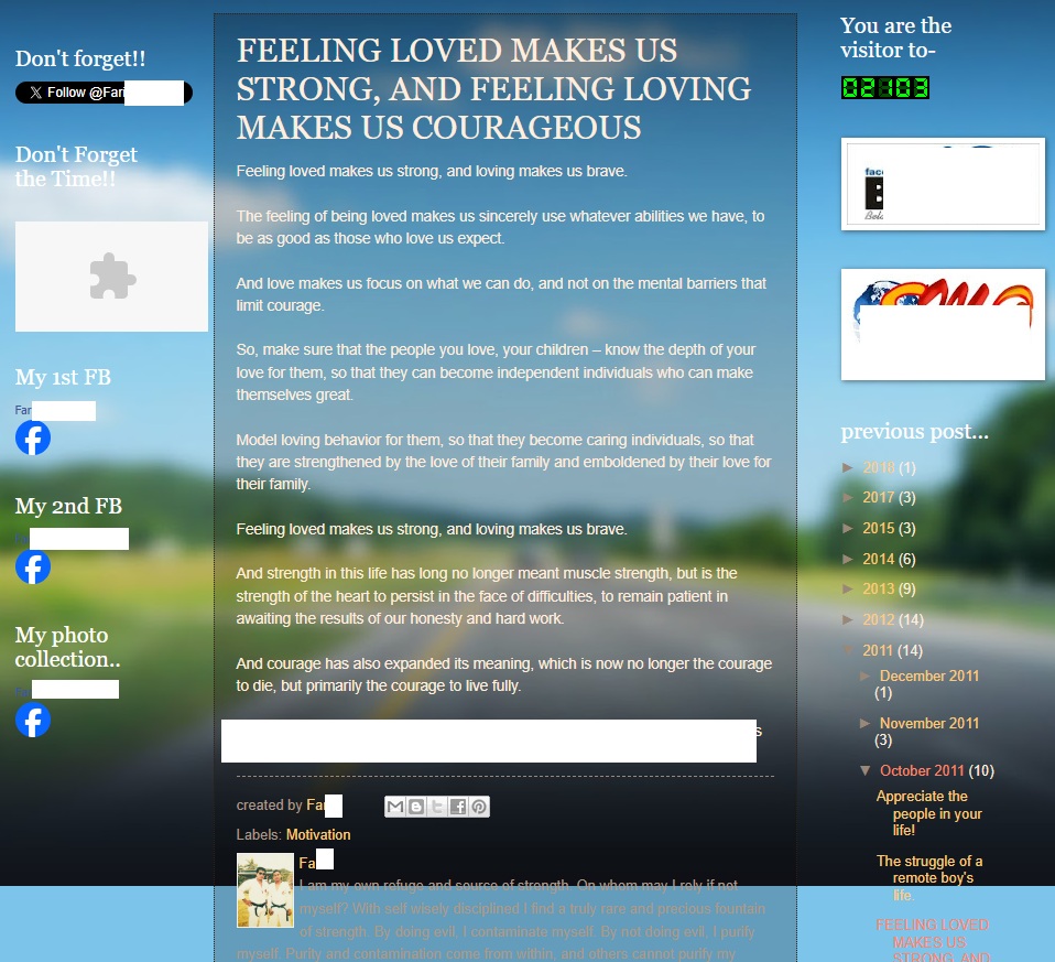 Feeling loved makes us strong, and loving makes us brave. And strength in this life has long no longer meant muscle strength, but is the strength of the heart to persist in the face of difficulties, to remain patient in awaiting the results of our honesty and hard work. And courage has also expanded its meaning, which is now no longer the courage to die, but primarily the courage to live fully.